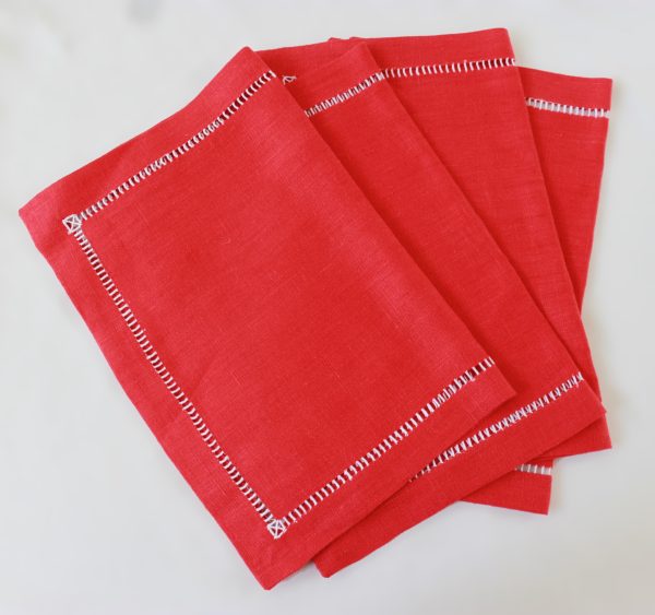 These embroidered 100% Linen placemats feature luxe hemstitching in complimentary colors for versatility and style. Machine was warm. Tumble dry low heat. Remove promptly and iron while still slightly damp. Never iron directly on embroidered surface.