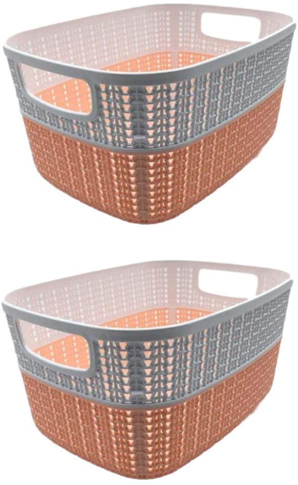 Set of 2 x (6.8LT) Medium Plastic Storage Baskets, Deeeze Knit Basket Shelf Storage