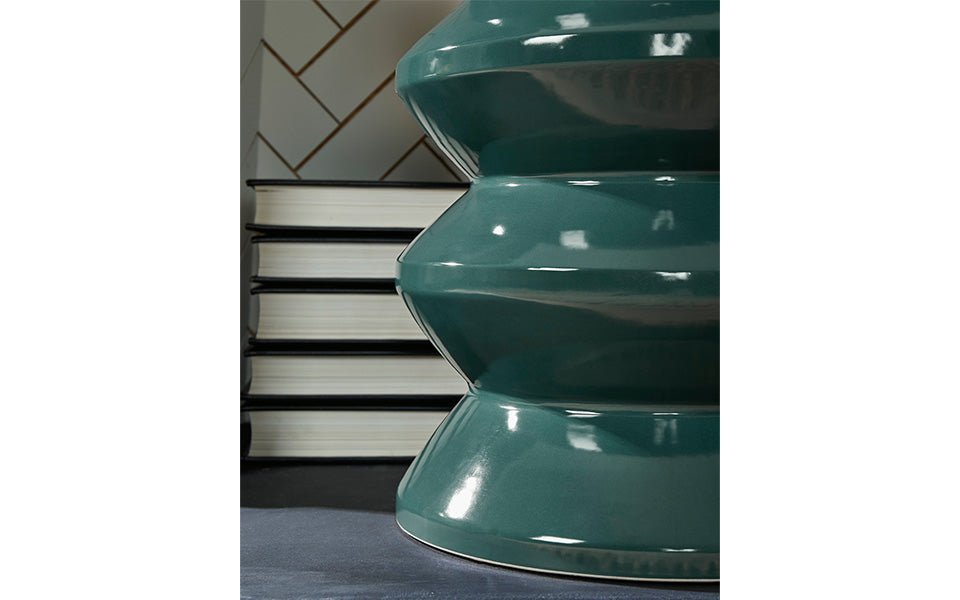 Become enamored by the bold curves of this accent stool. A teal glaze gleams against the dynamically designed ceramic piece, supporting house plants, decor or your beverage of choice in simply stunning style. This versatile piece is indoor-outdoor safe.