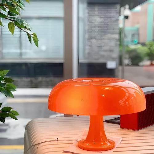Whether used as a desk lamp or as a bedside companion, this Orange Mushroom Lamp adds a delightful touch of personality to any room.